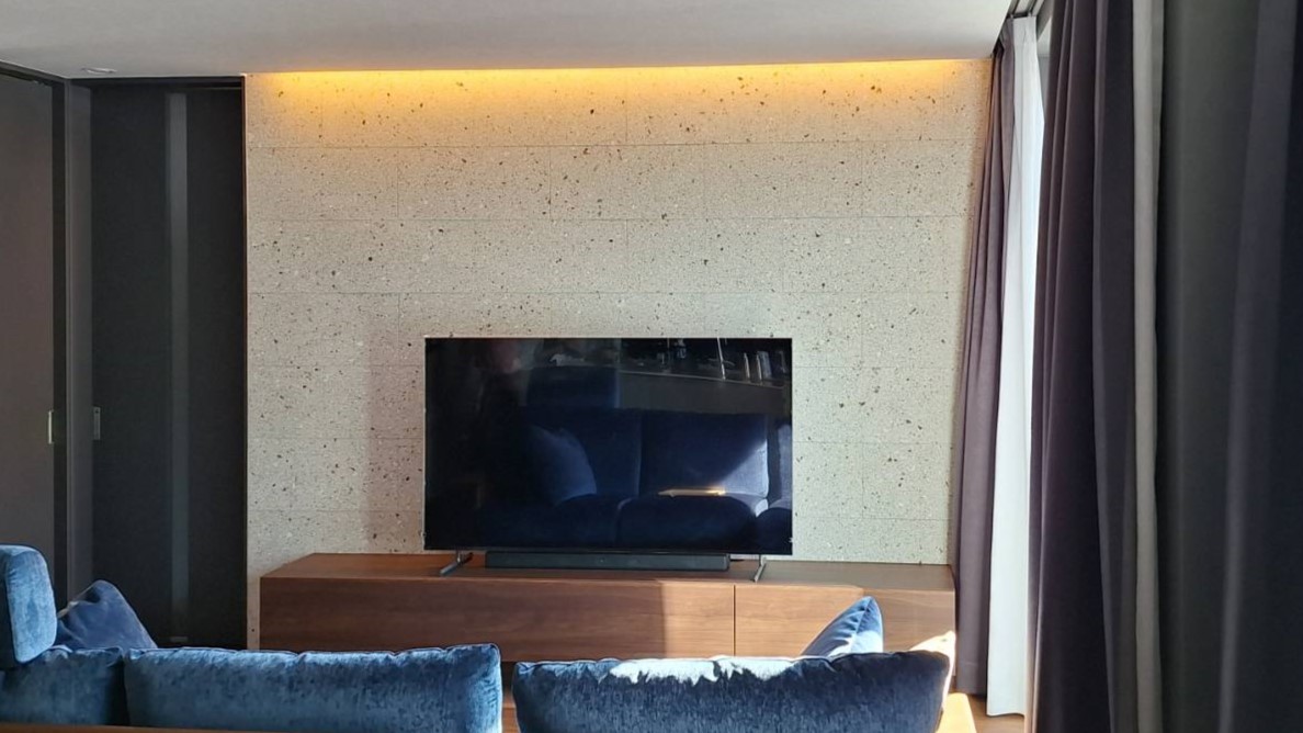 2026.02 大谷石の細目ダイヤ挽き仕上げを20×300×600を基本にウマ貼りで施工致しました。 大谷石の持つ独特の表情の美しさ、柔らかな色合いと細かな石肌の質感が、空間に温かみを与えています。 また、大谷石特有のやさしい光の反射も印象的です。 石でありながらどこか柔らかさを感じる自然素材ならではの安心感が魅力です。