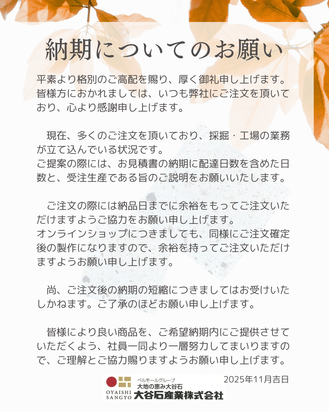 納期についてのお願い (1)