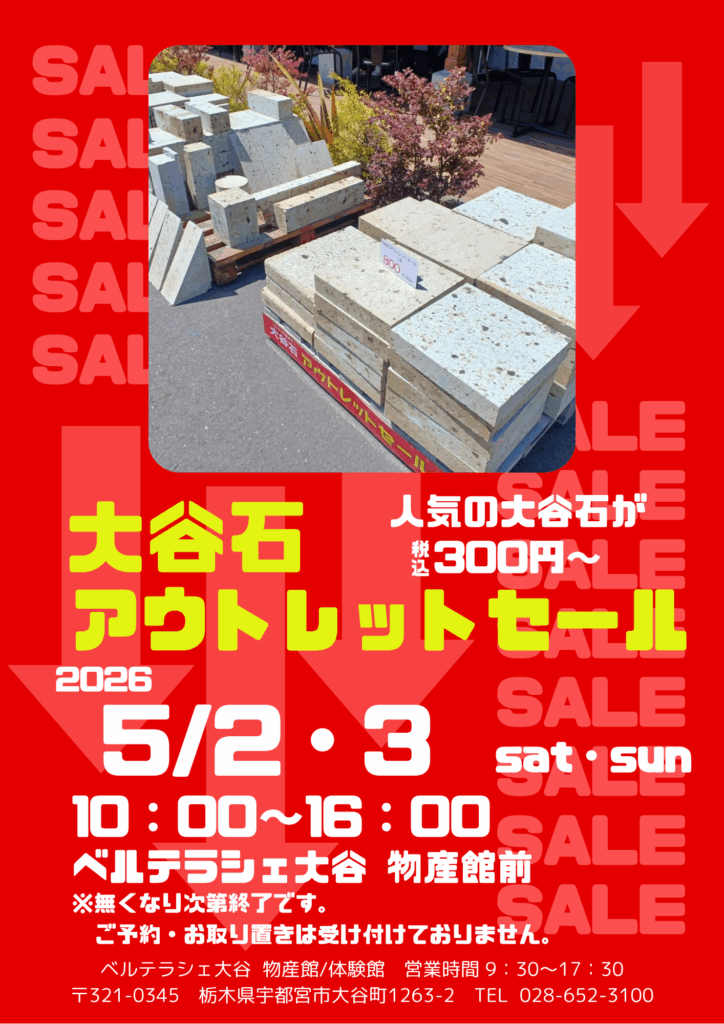 【ベルテラシェ大谷】5/2,3 大谷石アウトレットセールを開催致します!